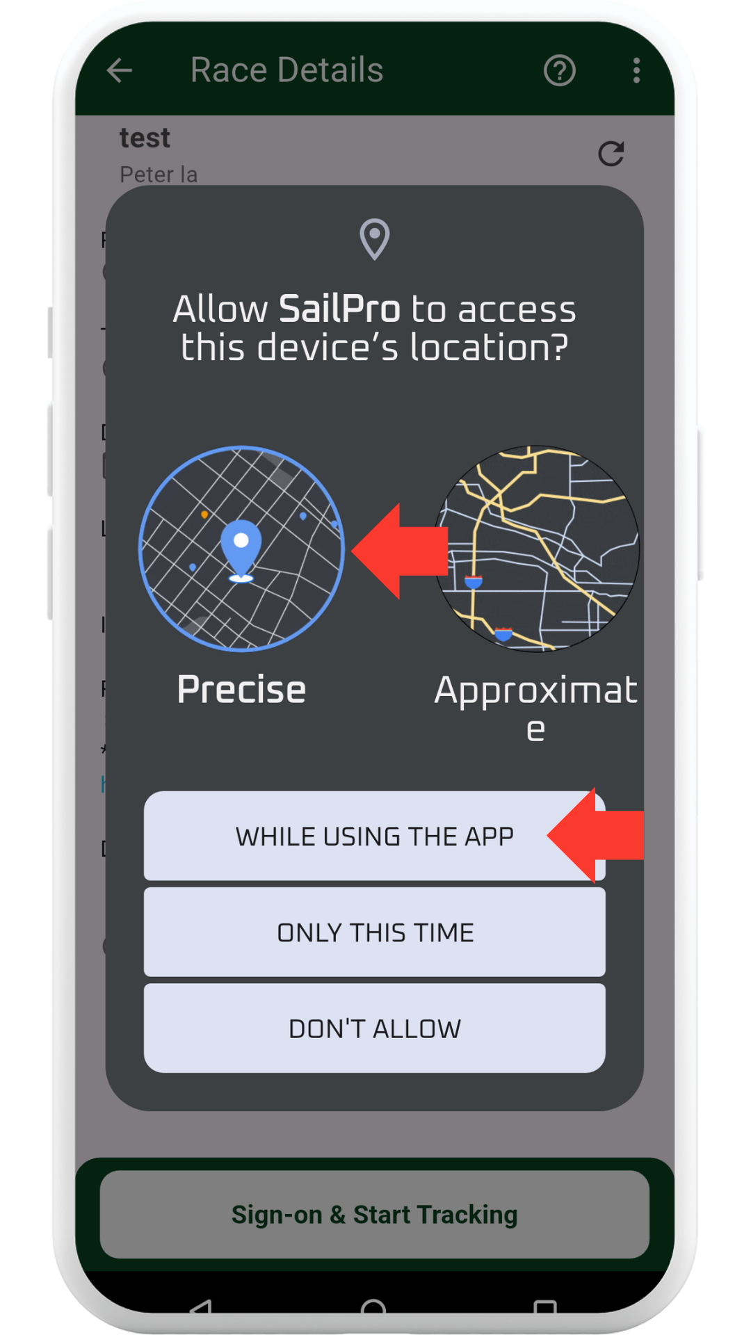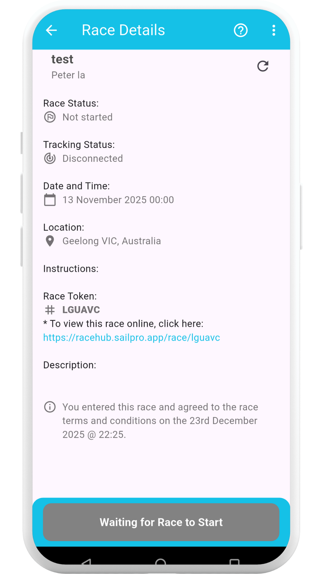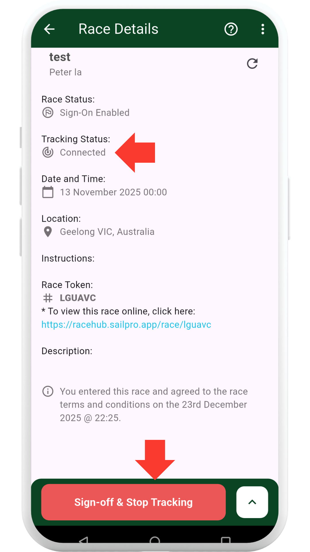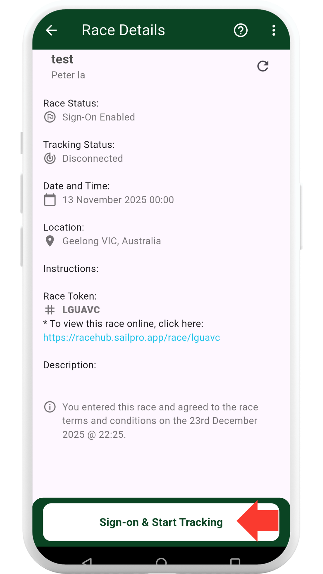 from Waiting for Race to Start to Sign-On & Start Tracking. Click